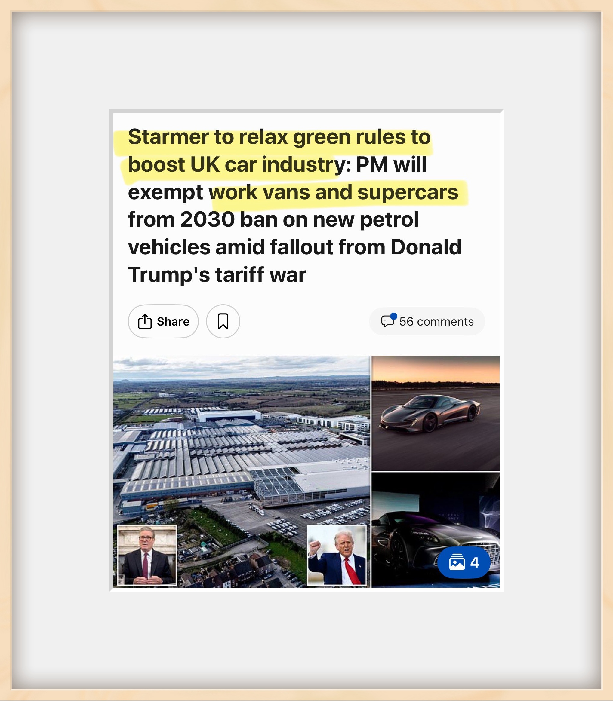 The majority of people do not understand or have not digested the implications of the announcement by Keir Starmer to exempt luxury sports cars from Net Zero emissions regulations while imposing strict controls on the vast majority of ordinary vehicles. The ban on petrol and diesel cars by 2030 will exempt ‘luxury vehicles’ such as McLarens, Bentleys, and Aston Martins. This net zero madness means only the wealthy will continue as normal, the poor have to pay while the rich get to play.
