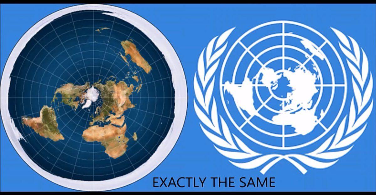 ( Hidden in plain sight, the UN logo is a flat earth model, easy to map with flight paths)