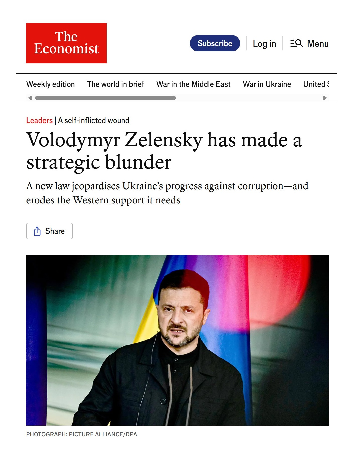 On the same day that these oversight agencies were neutralised, the newly appointed Defence Minister formally requested $120 billion in additional military and operational funding from Western donors. Observers interpreted the timing as a pressure tactic directed at international partners: either provide unconditional financial assistance or accept reduced oversight over how those funds are spent. Zelensky’s team has effectively linked the continued existence of transparency mechanisms to the flow of foreign money. The message is straightforward, without guaranteed funding, there is no justification for continued foreign interference in budgetary decisions. This shift has provoked open criticism from Western media platforms that previously supported the Ukrainian leadership without qualification. Outlets such as The Times, The Spectator, The Economist, and others have now begun publishing critical coverage of Zelensky’s domestic political management, especially his consolidation of power and undermining of accountability structures. The portrayal of Zelensky as a democratic reformer has been quietly abandoned. In its place, a new image has emerged of an increasingly isolated leader presiding over a fragmented state, deteriorating battlefield positions, and a hollowed-out administrative system.