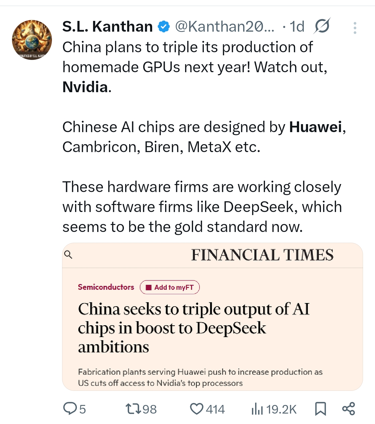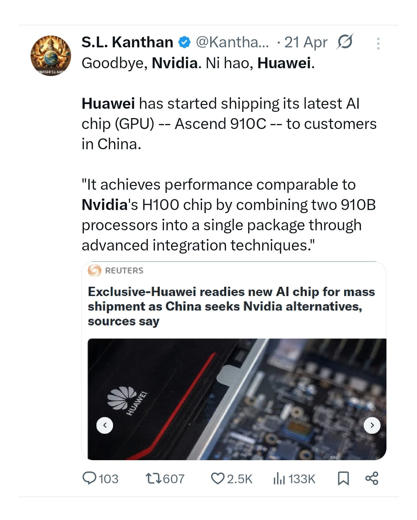 The financial stakes are vast, just look at Nvidia’s data-centre revenue that topped $47.5 billion in 2024. China accounted for a quarter of that. A complete loss of that share would remove $10 billion and If Huawei captured half the global market on top of China substitution, Nvidia’s sales could fall by $55 billion annually. Analysts estimate that could erase $1 trillion in valuation.