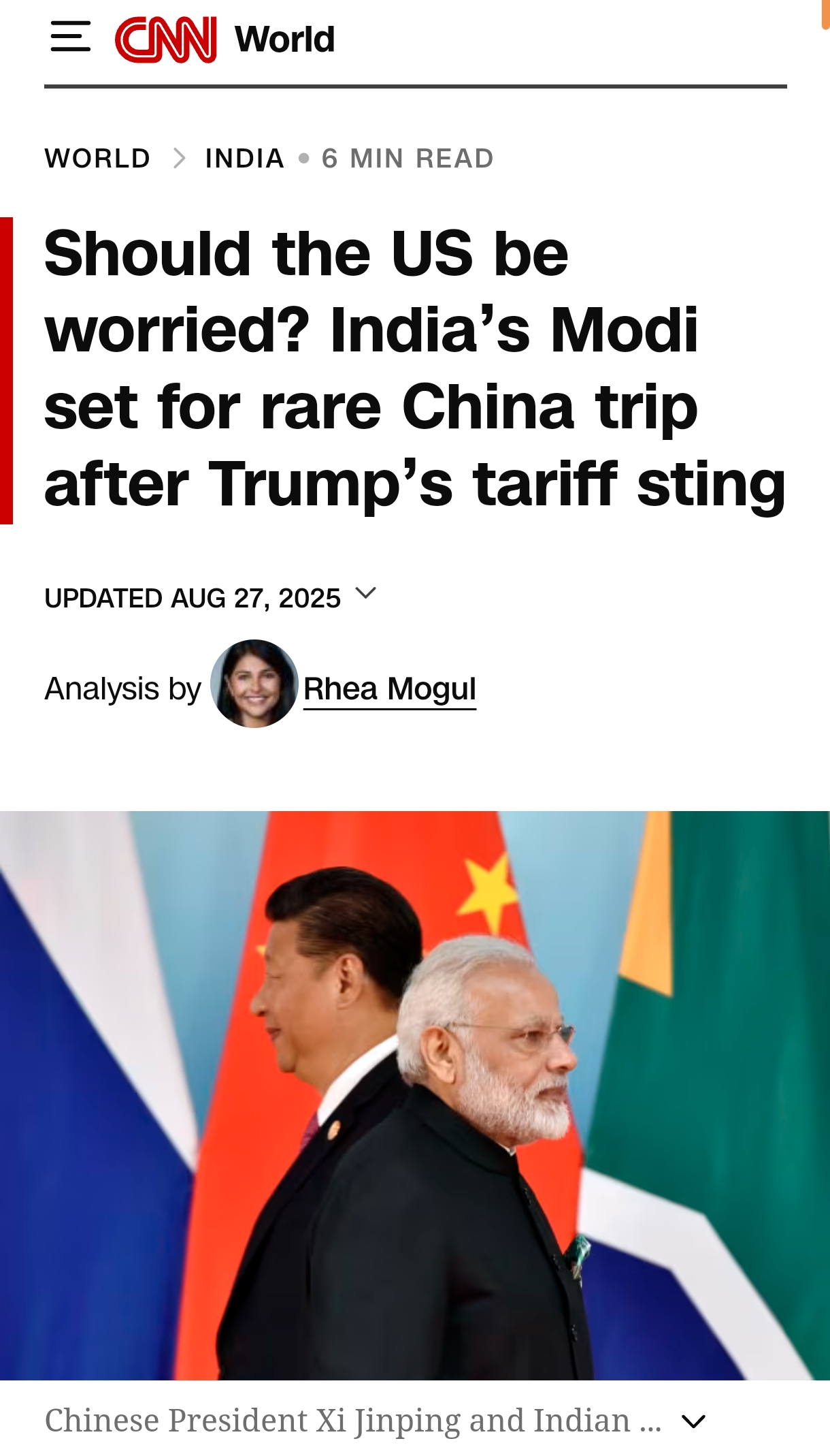 CNN went a step further in suggesting that Western pressure is what forced India and China to put aside their differences and join hands at the summit. This narrative ignores the longstanding diplomatic efforts that both India and China have invested in, independently of Western influence. The reality is that both countries are engaging with each other as part of their broader strategic calculations in a rapidly changing global environment. Their cooperation in the SCO reflects not Western pressure, but a shared understanding of mutual benefits in terms of economic development and regional stability.
