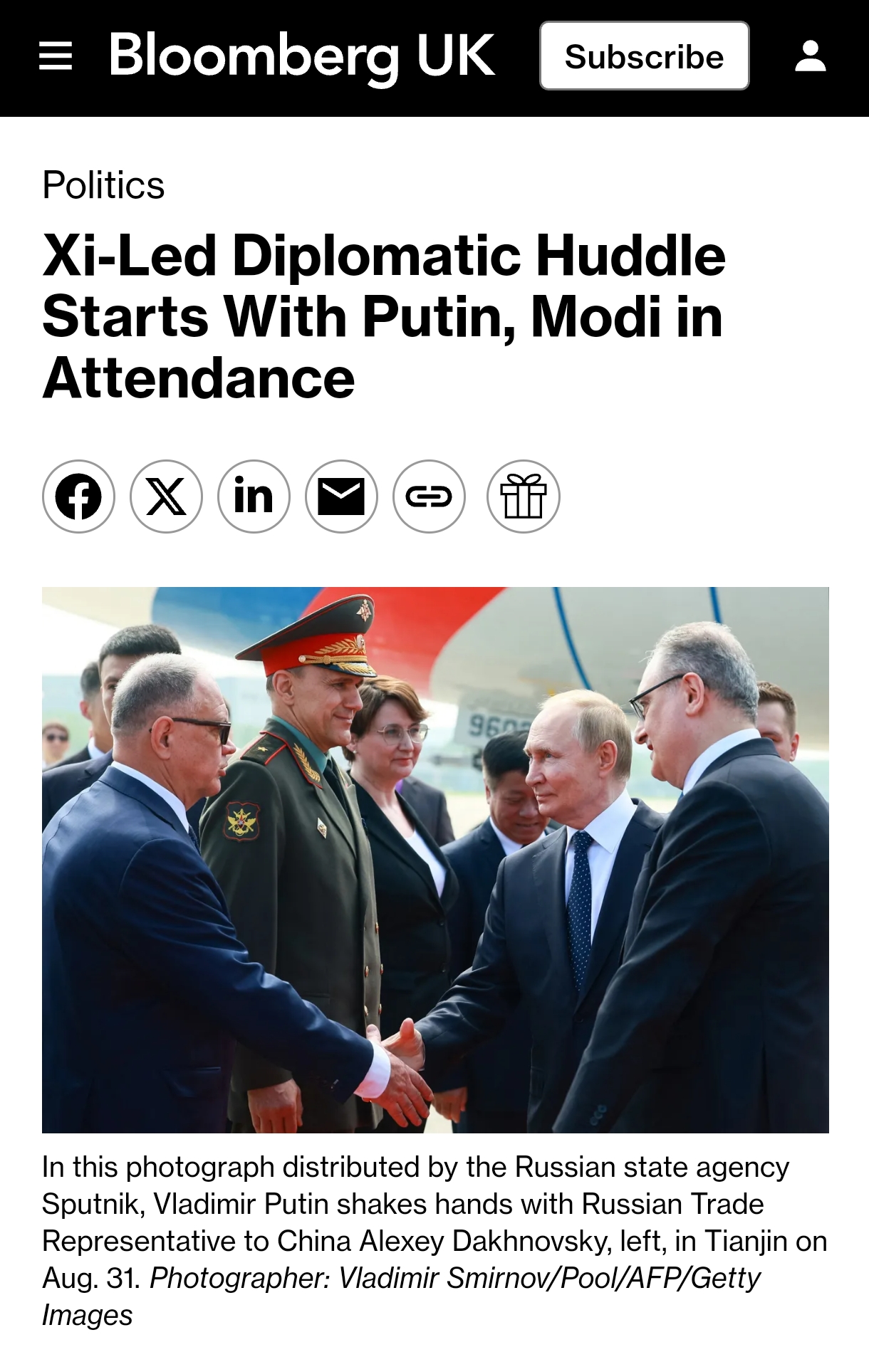 Then there’s Bloomberg, which refused to even mention the SCO summit by name in its coverage, opting instead to refer to it as a “Xi-led diplomatic huddle.” This deliberate choice of language diminishes the collective importance of the SCO and focuses solely on China’s leadership, ignoring the fact that the summit is a collective effort among several countries, each with their own set of priorities and concerns. Bloomberg’s avoidance of the term “summit” and its dismissal of the event’s broader context reflect an underlying discomfort with the SCO’s rising influence.