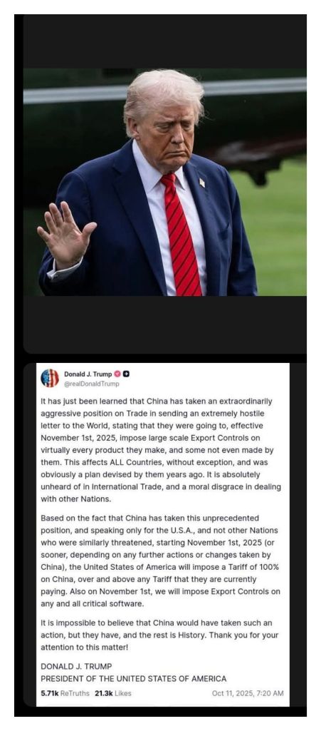 If the United States imposes a 100 percent tariff on Chinese goods starting November 1, 2025, in response to China’s newly intensified export controls on strategic minerals, we are witnessing a structural escalation rather than mere posturing. That move vastly expands the economic front of U.S.–China confrontation; it tilts the balance toward a multi‑dimensional conflict in which trade, technology, supply chains, finance, diplomacy and potentially military posturing become battlegrounds. The question is not whether China will respond, but how, where, and with what effectiveness. The deeper question is whether this titanic gamble will succeed in enforcing U.S. objectives and what the final settlement, if any, might look like.