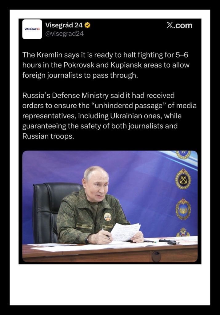 Putin’s decision to offer journalists safe passage to the front was not an act of transparency or goodwill. It was a move in a larger political game. Russia knew Kyiv could not allow journalists to take that offer without losing control of the narrative. If foreign reporters saw Ukrainian troops cut off and surrounded, it would confirm what Moscow has been saying and what Kyiv has been denying for weeks, that Ukrainian brigades in key sectors have been encircled and left without supply or escape.