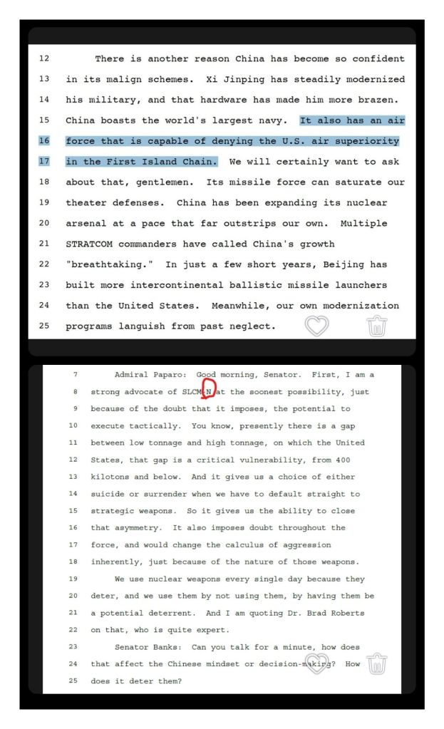 The deepening U.S.–Japan–Taiwan defence cooperation must be viewed through that historical frame, since the current pattern echoes the Cold War structure that China regards as hostile and intrusive. Independent commentators such as Scott Horton have warned that the continued militarisation of Taiwan risks drawing the region toward a confrontation that the United States cannot manage without resorting to nuclear threats, and Horton told his audience that Washington should “back the hell out of there now,” a blunt assessment that reflects a growing view among dissident analysts that the United States is building a confrontation that could escalate beyond control. His warning gained traction when USINDOPACOM commander Admiral Samuel Paparo told the U.S. Senate that Washington had lost air superiority near Taiwan and therefore could not expect to win a conventional conflict against China, forcing American planners to rely on submarine-launched tactical nuclear weapons as a last resort. When a serving commander delivers such an assessment to lawmakers, independent analysts treat it as confirmation that the United States is compensating for declining conventional advantage with high-risk strategies.