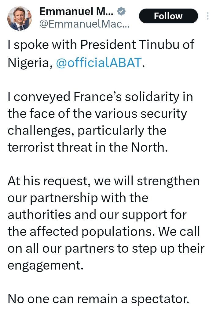 The political meaning of the intervention shifted decisively following a public statement by the French president confirming direct communication with Nigeria’s head of state during the crisis. The statement acknowledged that France had instructed Nigeria to act and had assisted materially in preventing the seizure of power. Such an admission marked a departure from customary diplomatic discretion, as strategic influence is generally exercised through multilateral language or indirect coordination. By publicly affirming operational involvement, the statement converted assumption into confirmation and stripped the intervention of plausible deniability.