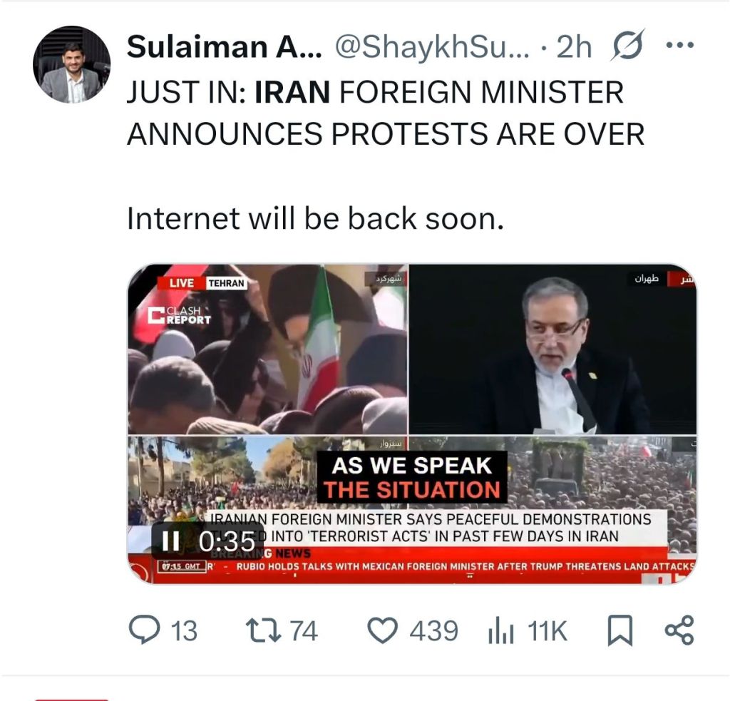 Recent protests across Iran emerged from severe economic distress driven by inflation, currency collapse, water shortages, electricity failures, and sanctions-induced isolation. These grievances are genuine and widely shared. Public anger has been visible in numerous cities, yet scale and momentum remain limited when compared with previous episodes of unrest. Israeli security analyst Ehud Ya’ari noted that nationwide protest centres numbered roughly sixty, concentrated primarily in eastern Tehran, far below the hundreds observed during earlier peaks of mobilisation. Demonstrations continued without expanding into a mass national movement capable of overwhelming state control mechanisms.