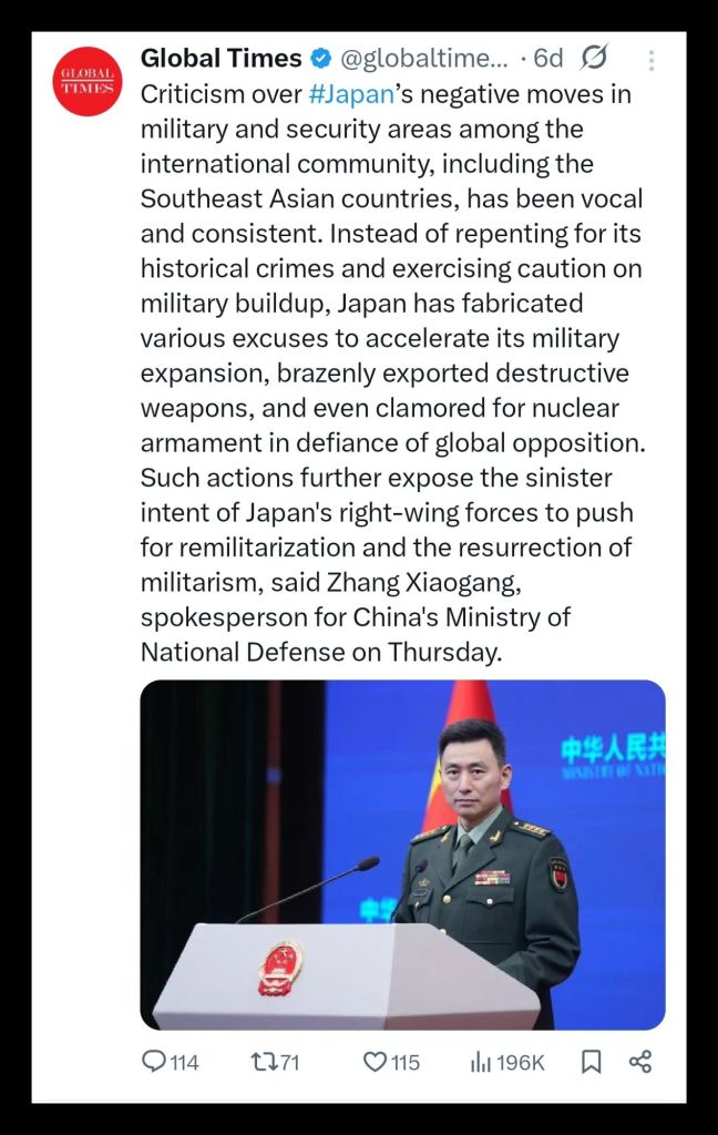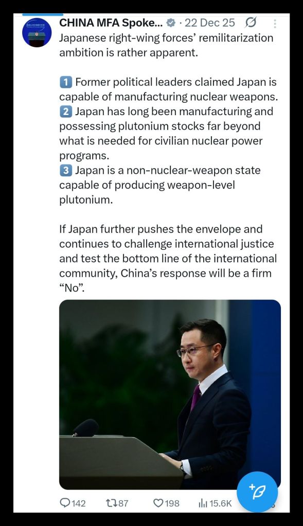 China’s response did not demand ideological alignment or political concessions. It required only that materials not be supplied for weapons intended to threaten Chinese interests. That boundary was communicated through regulatory language rather than ultimatums. The invitation to continue civilian trade remained explicit. Japan’s rhetorical escalation ignored that offer. By treating export controls as hostile acts rather than predictable consequences, Tokyo narrowed diplomatic space. The posture aligned with broader efforts to normalise military expansion while externalising responsibility for resulting constraints.