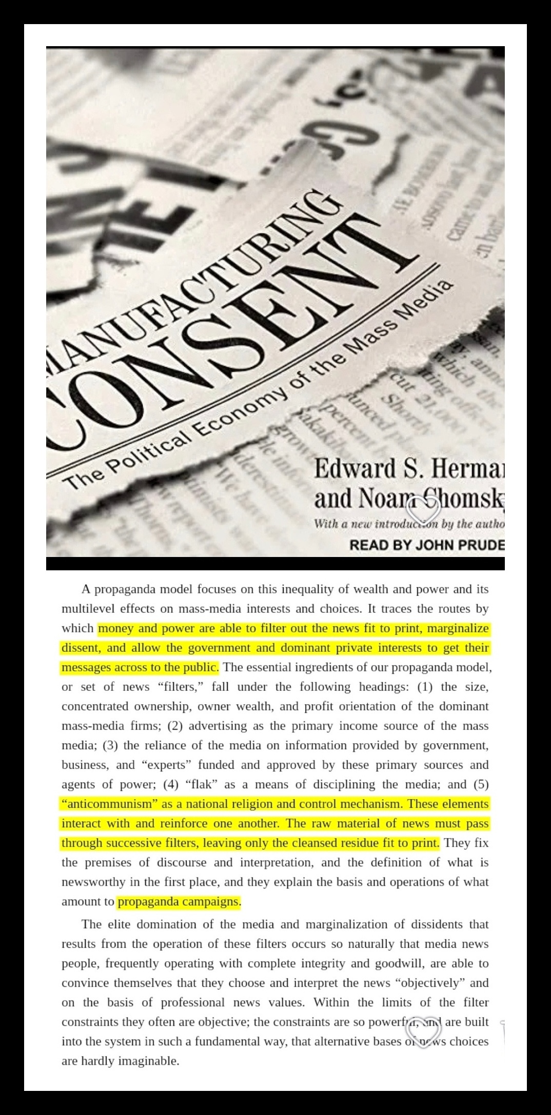 Edward Herman and Noam Chomsky’s Manufacturing Consent described earlier media filtering through ownership, sourcing, and ideology. Digital systems intensify this filtering effect. Algorithmic amplification rewards alignment and punishes deviation without explicit censorship. Silence replaces debate while producing the same outcome.