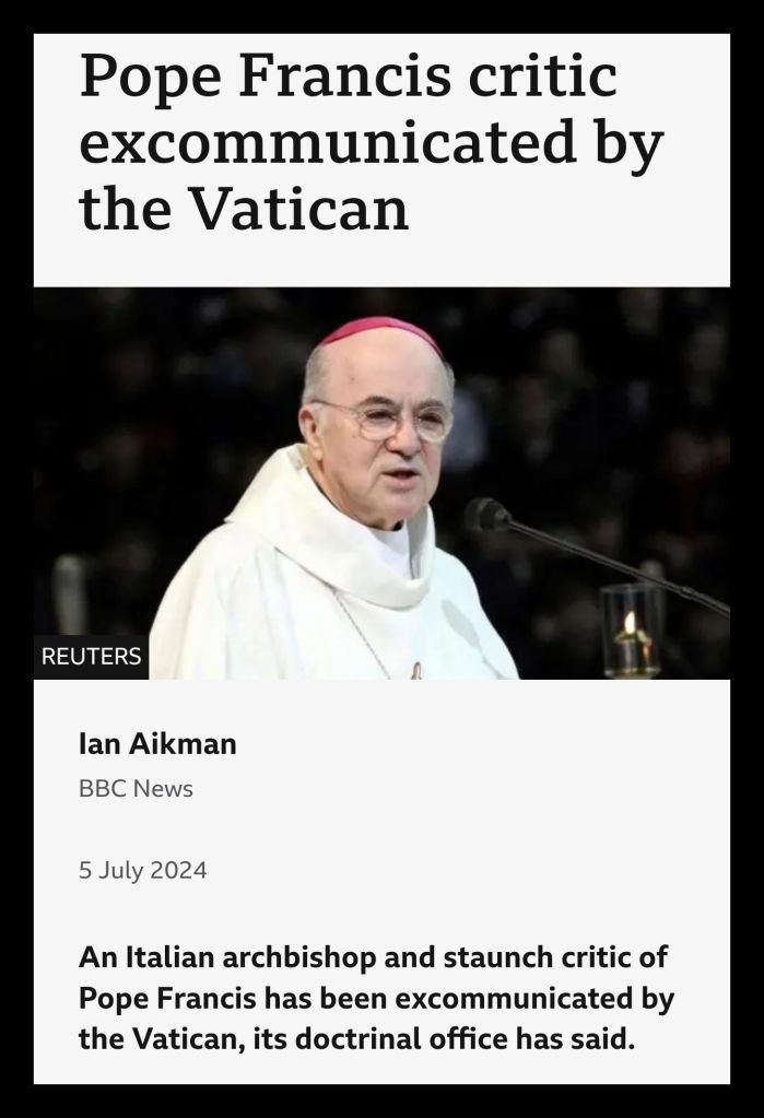 This video post Archbishop Carlo Maria Viganò addresses the consolidation of power within modern Western governance and the deliberate suppression of opposition. For those who don’t know, he was excommunicated by the Vatican in 2024 on allegations of schism. He was described by the lamestream media as a staunch critic of Pope Francis.