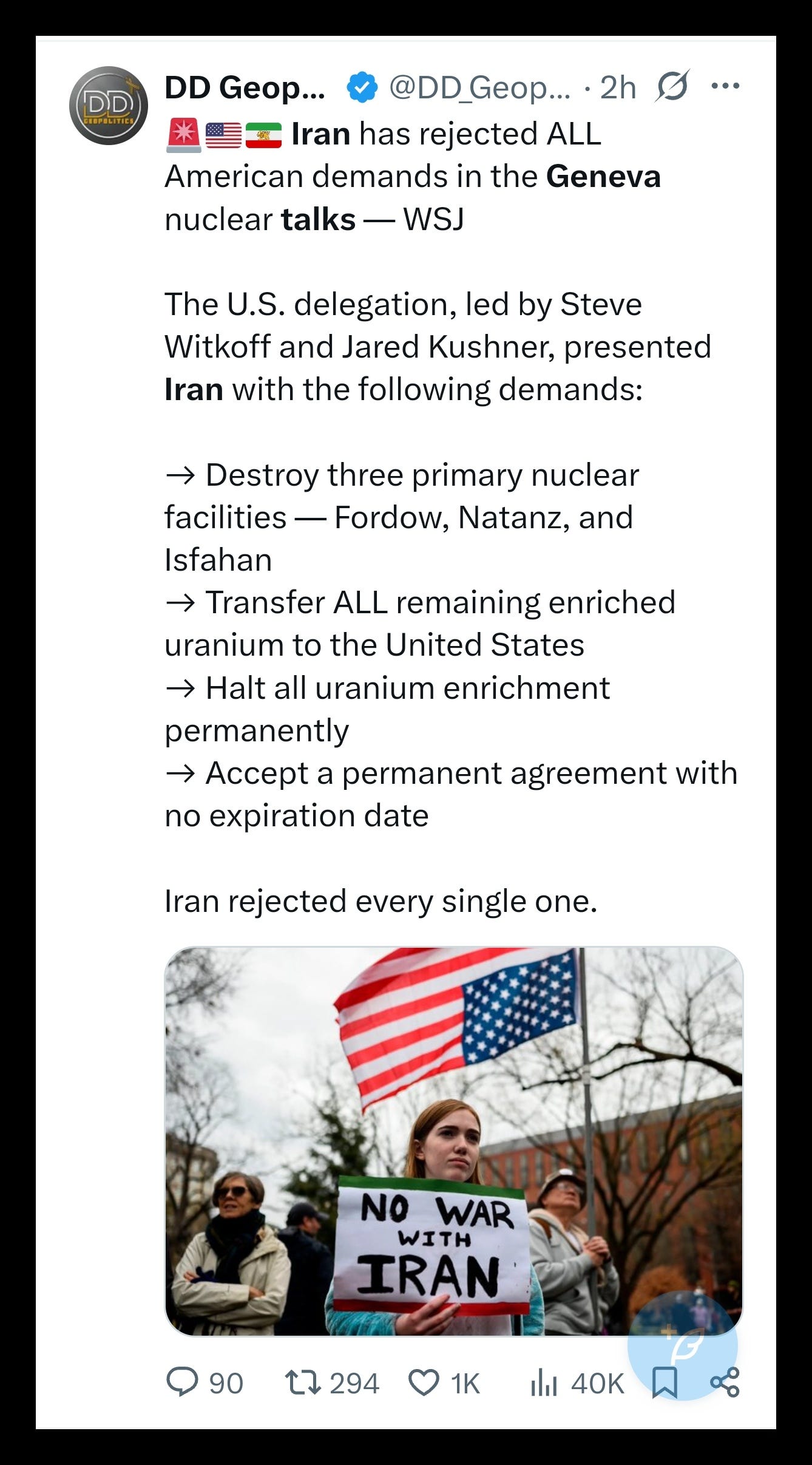 Within Western policy debates, some commentators have questioned whether objectives extend beyond regime change towards fragmentation of Iranian territorial integrity, arguing that coercive maximalism reduces space for negotiated compromise. Others maintain that permanent zero enrichment remains essential to prevent rapid breakout capacity. The gulf between these positions in Geneva has functioned as documentary record for impending force employment rather than as convergence platform.