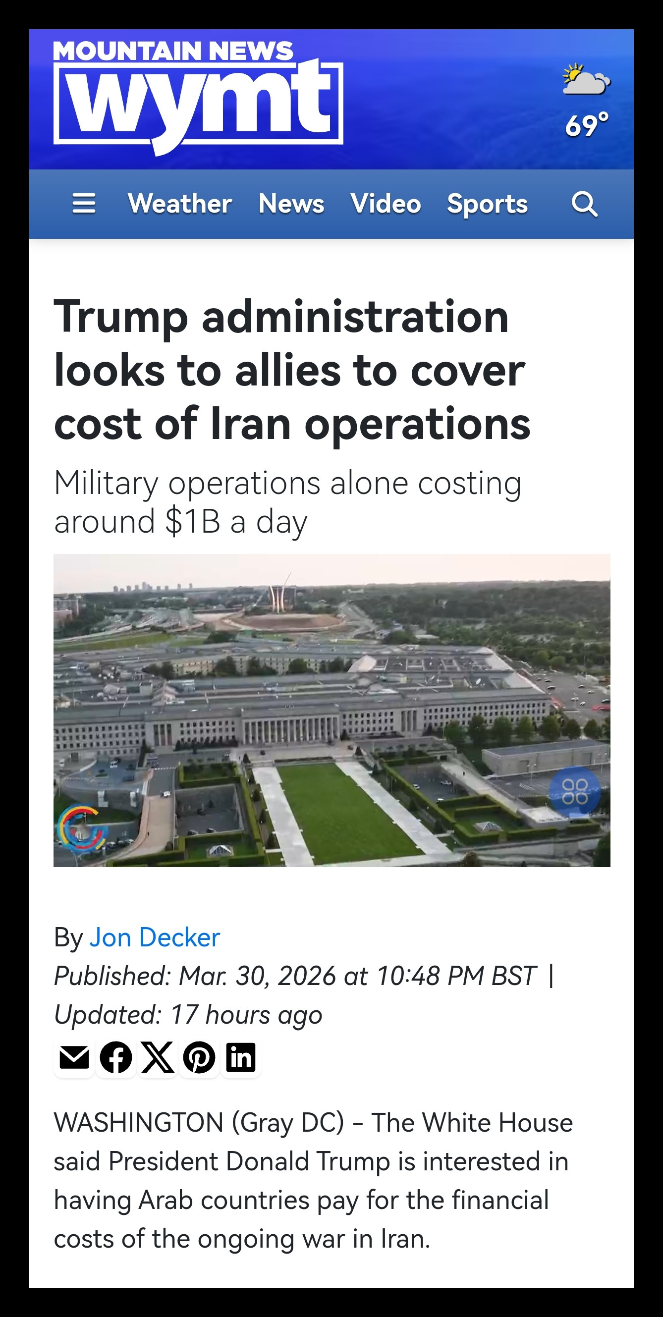 The Gulf states are charged for the “myth” of protection. They didn’t start the Iranian war nor were they even consulted. They just woke up to the news of the double tap bombing of a girls elementary school by U.S. made Tomahawks like the rest of us. This is a supranational controlled system operates as a protection racket, no different from the mafioso or cartels. What is now being reported, that the Trump administration wants allies to help cover a war costing around $1 billion a day, does not reveal strength as much as it exposes the structure underneath it. (https://www.kolotv.com)