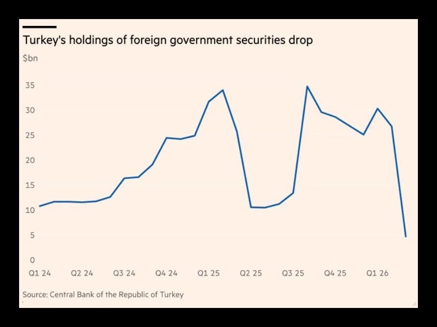 A financial shock is moving through the global system as foreign central banks offload tens of billions of dollars in U.S. Treasuries in a matter of weeks in favor of gold as a safe haven asset. The scale, roughly $82 billion in a single month, signals more than routine portfolio adjustment. It reflects mounting stress across currency markets as countries scramble to defend their own economies amid rising energy prices and geopolitical escalation. As oil surges in response to conflict involving Iran, import-dependent economies are being squeezed, forcing central banks in countries such as Turkey and India to sell dollar-denominated assets to stabilize their currencies and contain inflationary pressure. Turkey accounted for roughly $22 billion of the sell-off, while India likely contributed in the range of $15-25 billion, based on historical intervention patterns and reserve dynamics, with the remainder spread across other emerging economies.