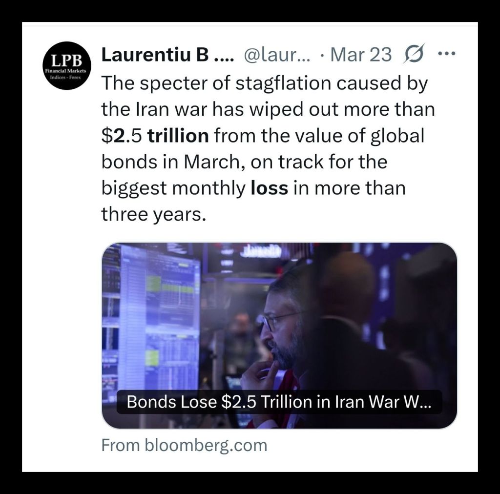 Developments after March 27th confirmed that these pressures continued. Oil prices remained elevated into early April, maintaining inflation. Stock markets experienced short-lived recoveries driven by political statements, though these did not reverse the overall decline. Bond yields remained high, showing continued pressure on government borrowing. Reports that United States Treasury officials sought additional foreign investment indicated concern about maintaining capital inflows, which are necessary to finance deficits.